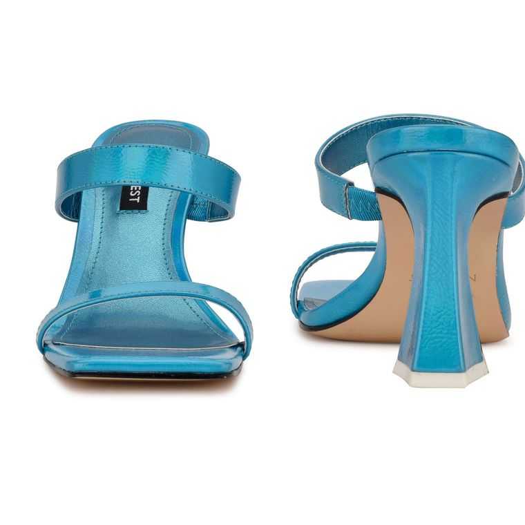 :: Nine West Darla Na Podpatku Slapky Sandals Modre Metal | FGJXTM-204