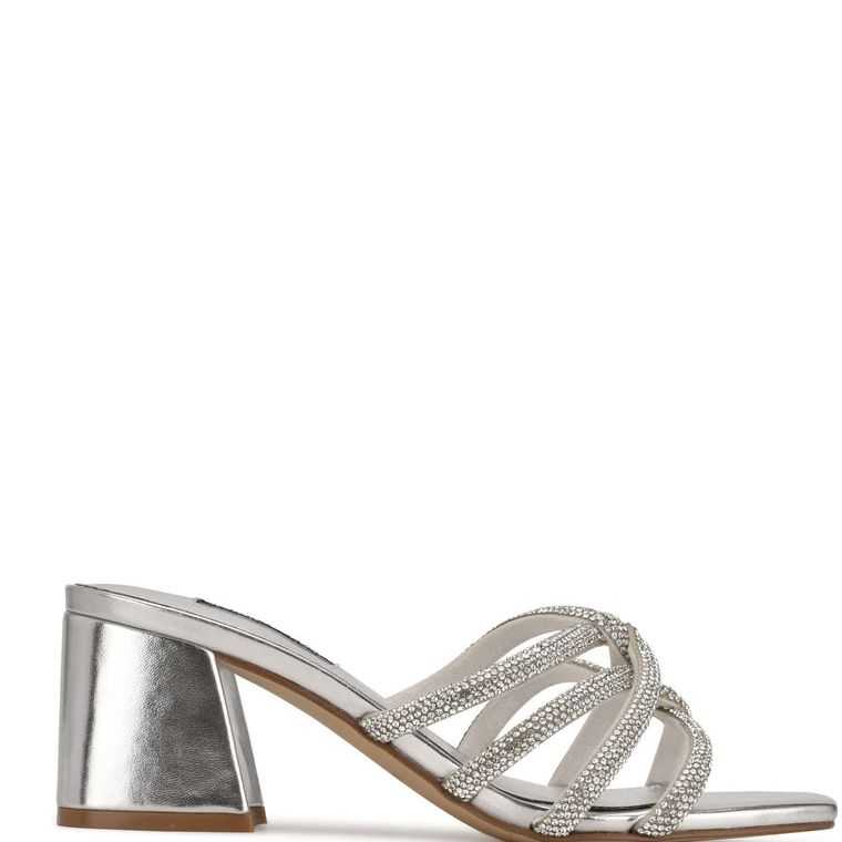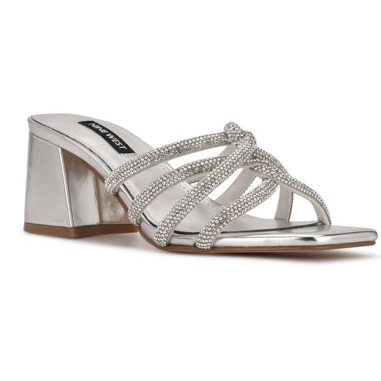 :: Nine West Glitz Block Heel Slapky Sandals Strieborne | TOSIKP-015