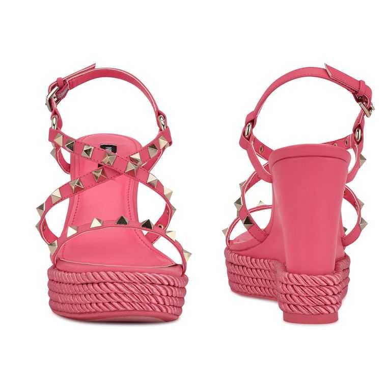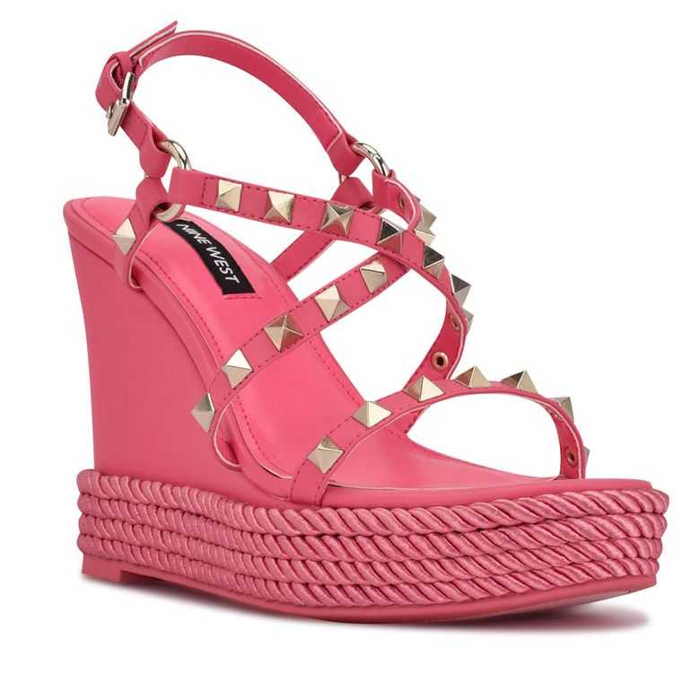 :: Nine West Harte Studded Espadrille Wedge Sandals Ruzove | KMQDUJ-971