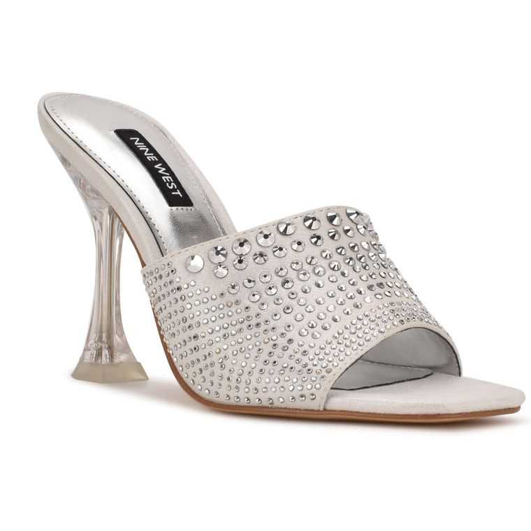 Nine West Ziptip Rhinestone Slapky Sandals Strieborne | YDOQHW-178